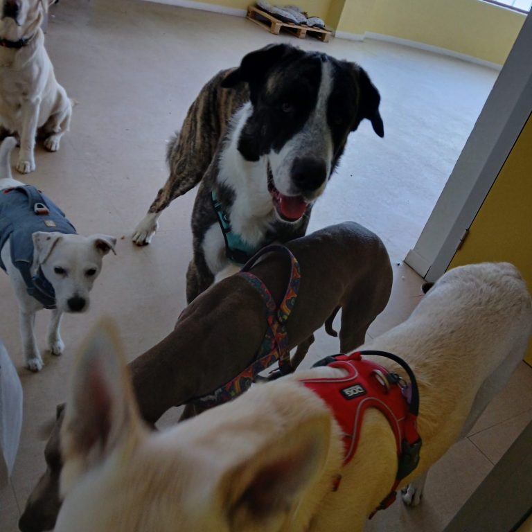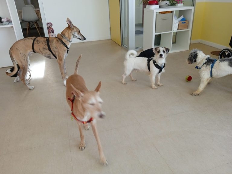 Disfruta de un servicio de guardería canina en Sevilla capital, con espacios amplios, sin jaulas y un patio privado donde tu mascota puede jugar libremente.